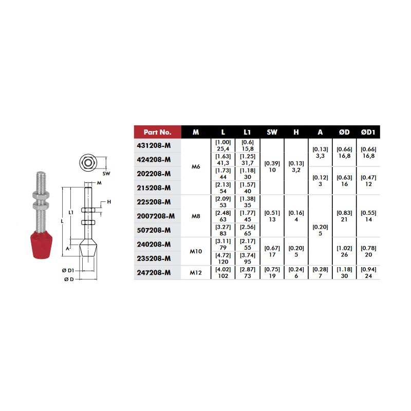Destaco lapos hegyű, neoprén beállító orsó, kézi leszorítókhoz. M8x1.25-ös menet, 63 mm hossz. Cserealkatrész 2007-U, 2007-UB, 2007-UR, 2007-UBR, 207-U, 207-UR, 207-UL, 207-UB, 207-ULB, 507-TU, 207-TUL, 207-UF, 207-I-L, 207-UB-L, 91090, 317-U, 2027-U, 2027-UR, 227-U, 227-UB, 227-U-L, 227-UB-L, 225-U, 225-UR, 225-UB, 307-U, 307-UR, 807-UE modellekhez.