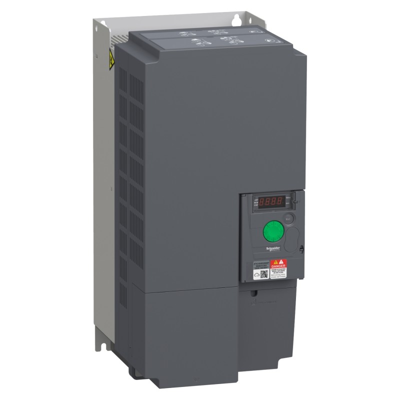 Schneider Electric Easy Altivar 310 sorozatú frekvenciaváltó, három fázisú 380...480 V -15...20 %, 22 kW esetén nagy igénybevétel, 30 kW esetén normál igénybevétel. EMC szűrővel.