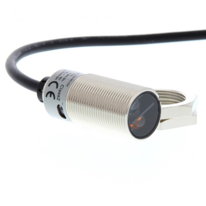 Kisméretű fotoelektromos kapcsoló masszív, rozsdamentes acél tokozásban. Prizmás működési elvű, 0,1 - 4 m érzékelési távolságra, NPN kimenettel. Tápfeszültség: 10..30 VDC, 2m beöntött kábellel.