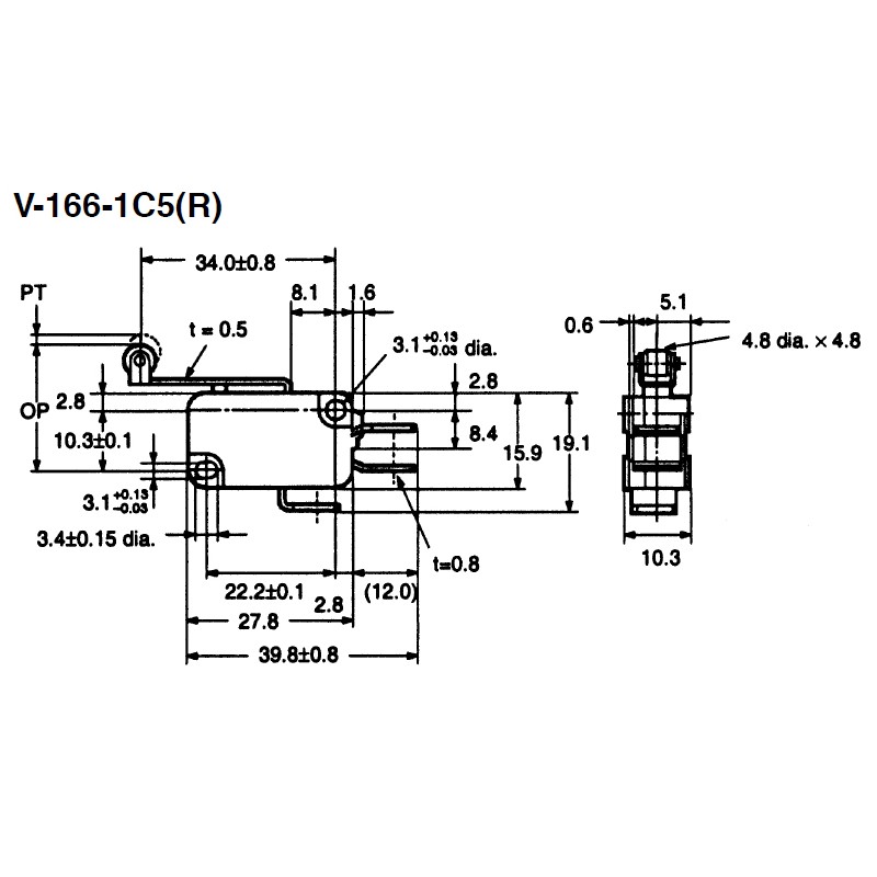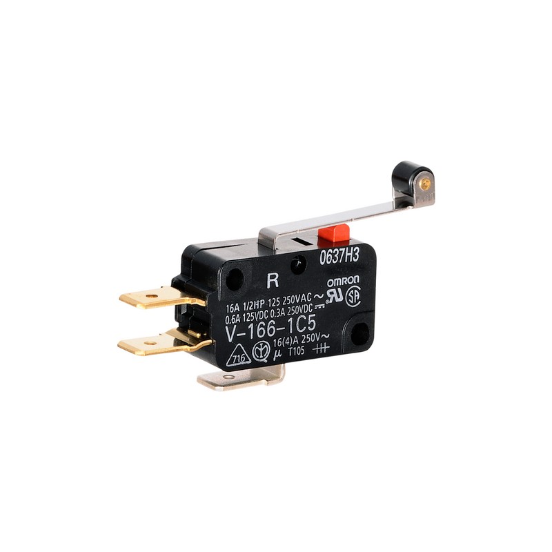 Általános célú kapcsoló, lemezkaros-görgős működtetővel, forrasztható csatlakozóval, 15 A-s kapcsolási áram. Gyári védőburkolattal is szerelhető.