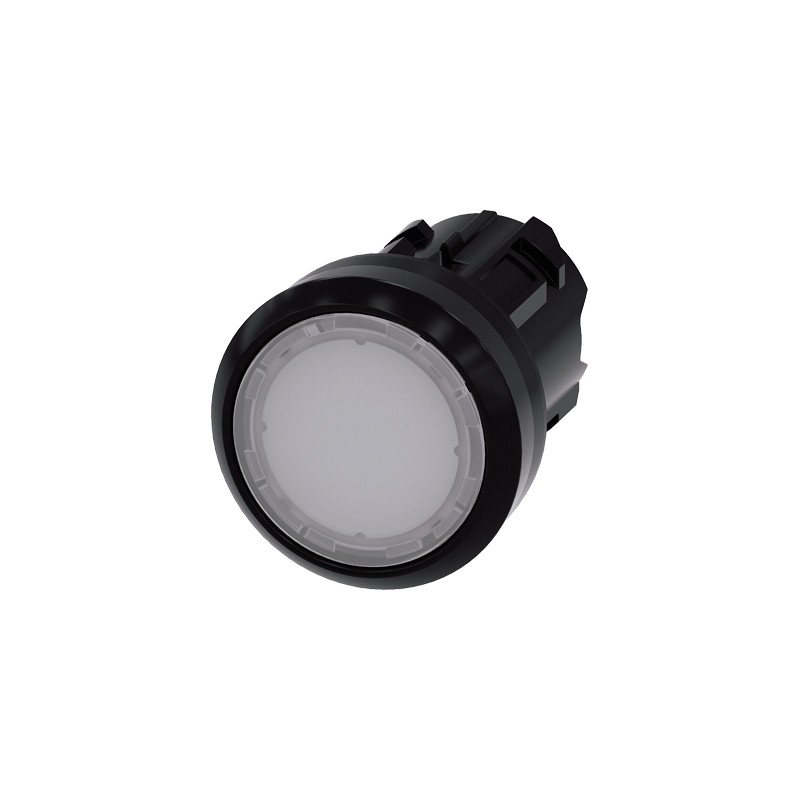 Siemens Sirius műanyag világító kerek nyomógombfej, fehér, 22 mm, lapos, nem reteszelt