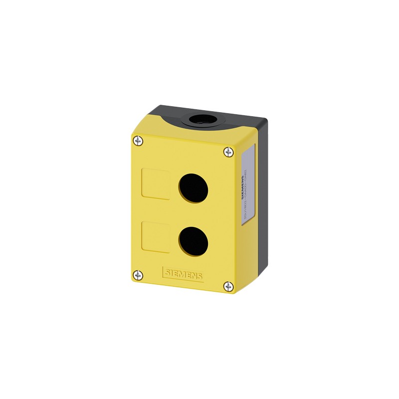 Siemens Sirius műanyag tokozat 22 mm-es nyomógombokhoz, kapcsolókhoz, sárga, üres, 2 kivágás.