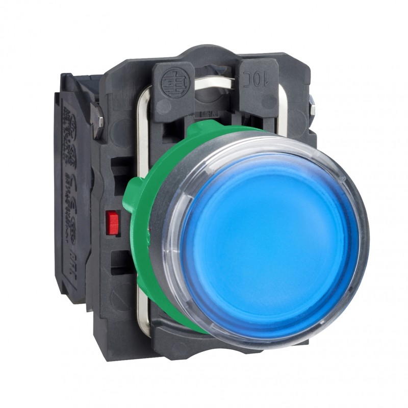 Schneider Harmony komplett műanyag LED világító nyomógomb, Ø22, visszatérő, 1 NO + 1 NC, 24VAC/DC, kék.