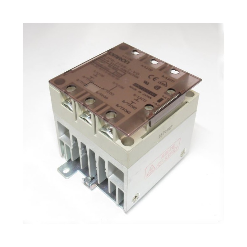 Hűtőbordára szerelt, nagyteljesítményű szilárdtestrelé, 15A, max. 264 VAC, csavaros csatlakozás. 2-fázis kapcsolására alkalmas.
