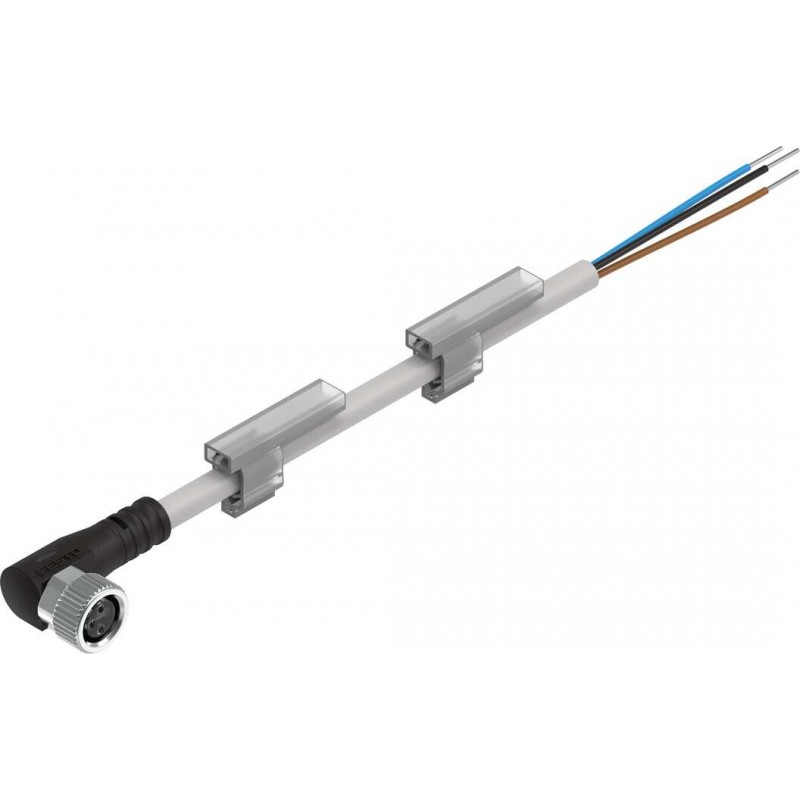 Festo NEBU sorozatú csatlakozó vezeték. 2,5 m 3x0,25 mm2 kábellel, 90°-os M8 csatlakozóval, két címketartóval.