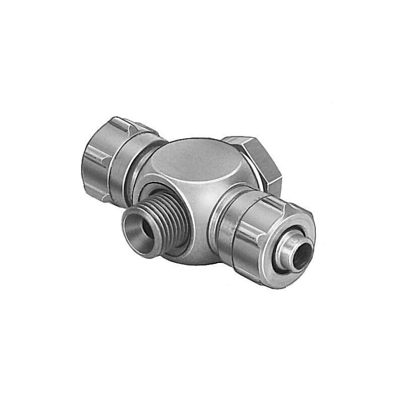 Camozzi nikkelezett réz T-gyorscsavarkötés 5/3 mm átmérőjű műanyag csövekhez.