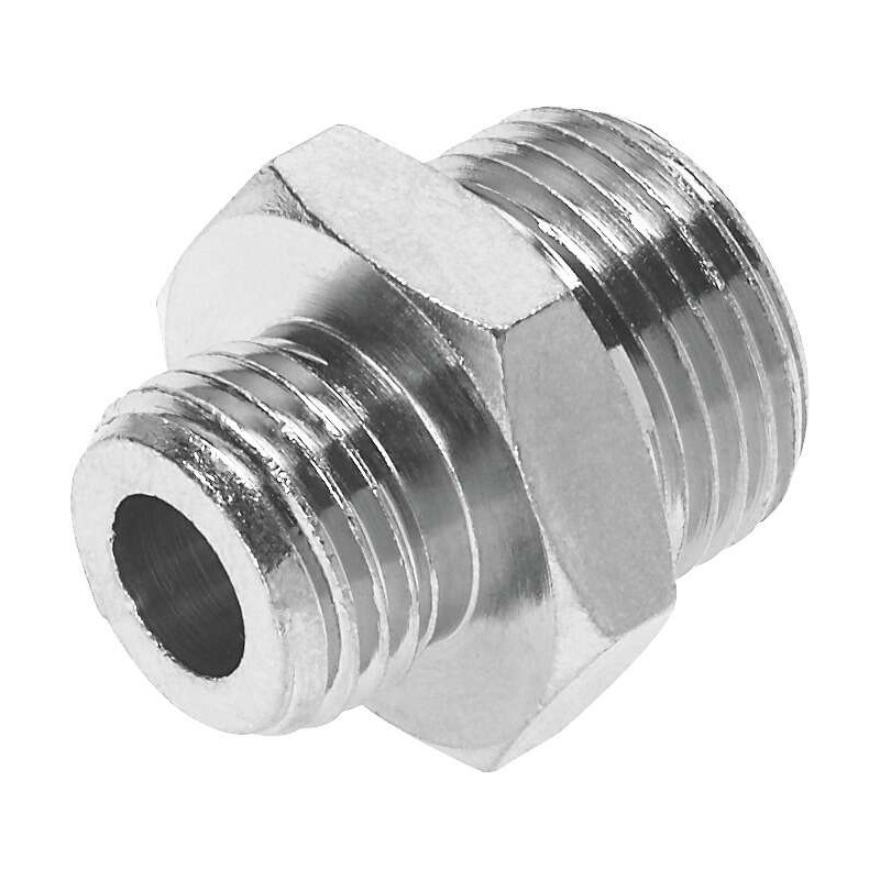 Camozzi nikkelezett réz szűkítő közcsavar G1/8 és G1/4 külső menetes csatlakozással.