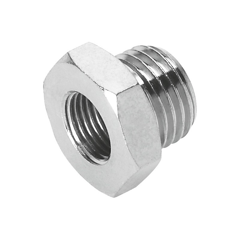 Camozzi nikkelezett réz szűkítő közcsavar G1/4 és G3/8 belső menetes csatlakozással.