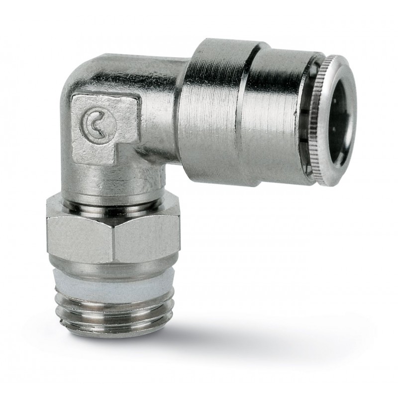 Camozzi nikkelezett réz könyök szupergyors csatlakozó 12 mm külső átmérőjű csőhöz, G3/8 külső menettel.