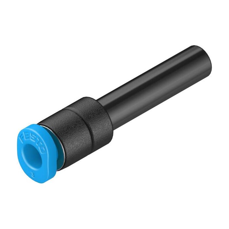 Festo QS sorozatú egyenes csatlakozó, mindkét végén push-in csatlakozóval 8 mm külső átmérőjű csövekhez.
