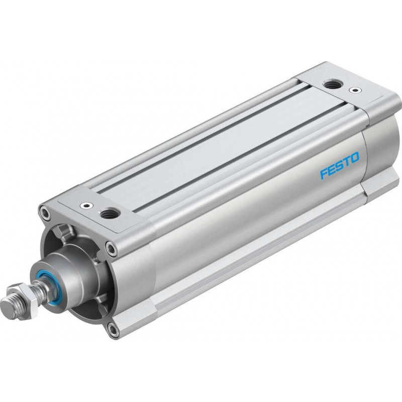 Kettősműködésű szabványos henger, átmérő 100 mm, lökethossz 250 mm. Dugattyúrúd menet M20x1.5, pneumatikus csatlakozás G1/2, működési nyomástartomány: 0.4 bar ... 12 bar. Mindkét végén állítható löketvég-csillapítással.