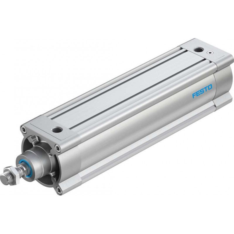 Kettősműködésű szabványos henger, átmérő 100 mm, lökethossz 320 mm. Dugattyúrúd menet M20x1.5, pneumatikus csatlakozás G1/2, működési nyomástartomány: 0.4 bar ... 12 bar. Önbeálló véghelyzet csillapítással.
