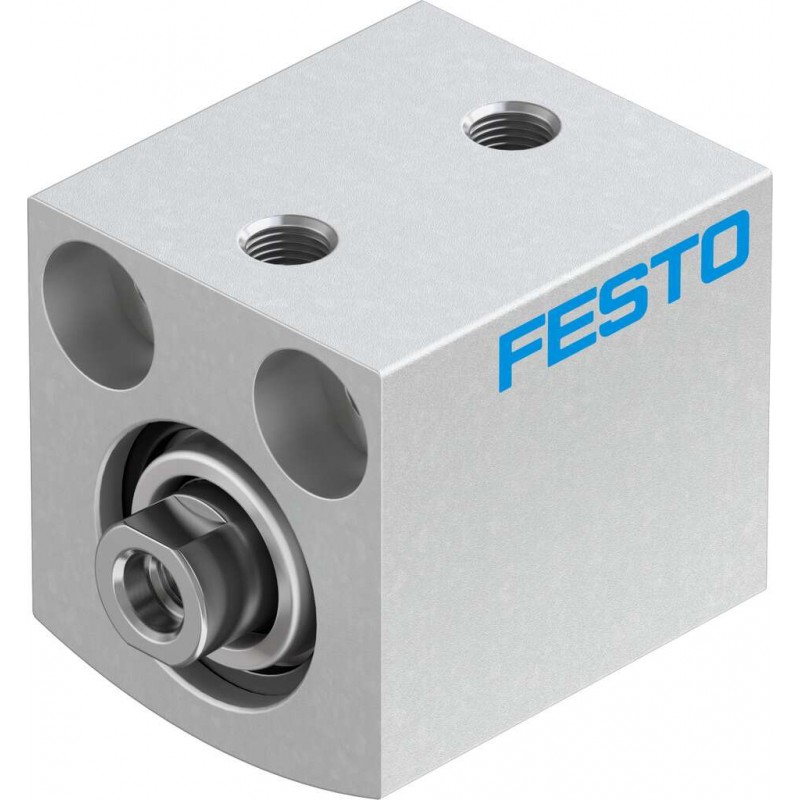 Festo ADVC sorozatú kettősműködésű rövidlöketű henger, dugattyú átmérő 16 mm, lökethossz 10 mm. Rugalmas csillapító gyűrűkkel mindkét végén, üzemi nyomás 1 bar ... 10 bar, pneumatikus csatlakozás M5.