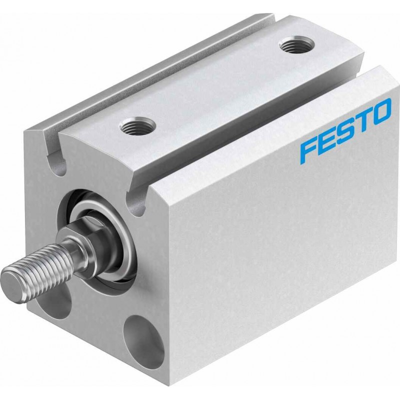 Festo ADVC sorozatú kettősműködésű rövidlöketű henger, dugattyú átmérő 16 mm, lökethossz 15 mm. Rugalmas csillapító gyűrűkkel mindkét végén, üzemi nyomás 1 bar ... 10 bar, pneumatikus csatlakozás M5.