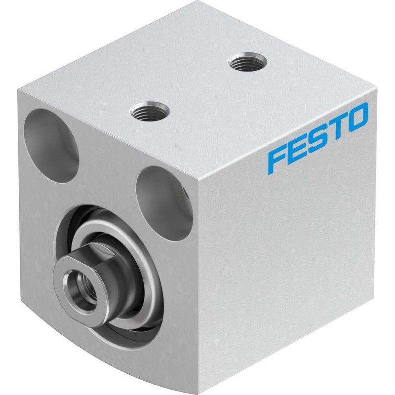 Festo ADVC sorozatú kettősműködésű rövidlöketű henger, dugattyú átmérő 20 mm, lökethossz 10 mm. Rugalmas csillapító gyűrűkkel mindkét végén, üzemi nyomás 1 bar ... 10 bar, pneumatikus csatlakozás M5.