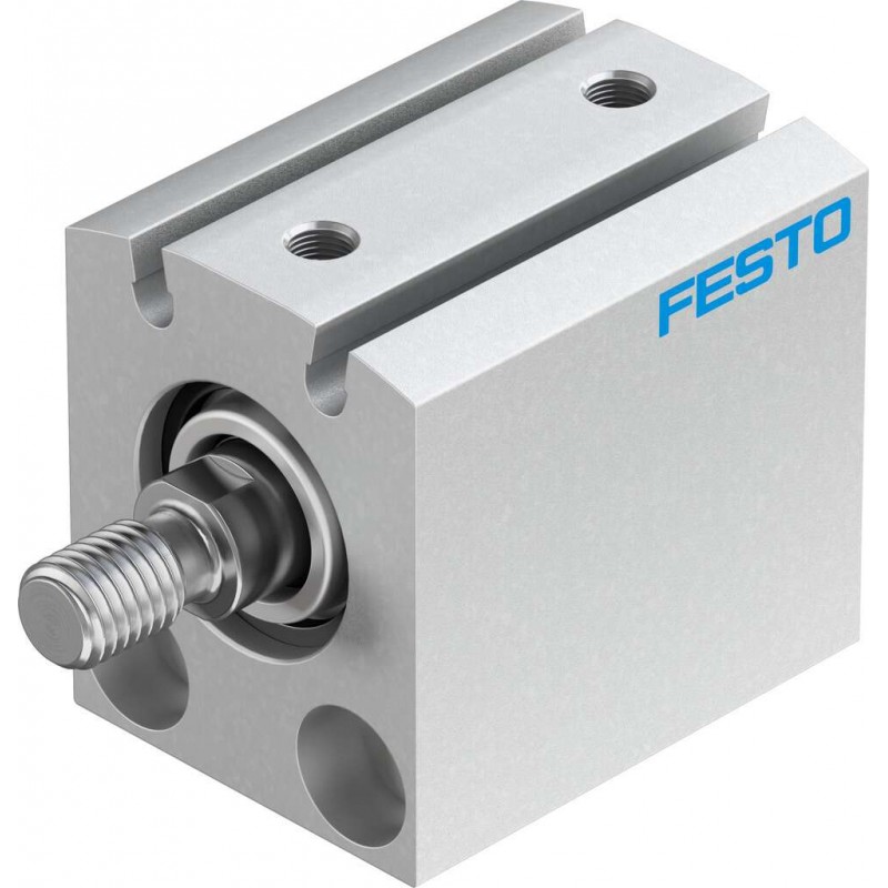 Festo ADVC sorozatú kettősműködésű rövidlöketű henger, dugattyú átmérő 20 mm, lökethossz 10 mm. Rugalmas csillapító gyűrűkkel mindkét végén, üzemi nyomás 1 bar ... 10 bar, pneumatikus csatlakozás M5.