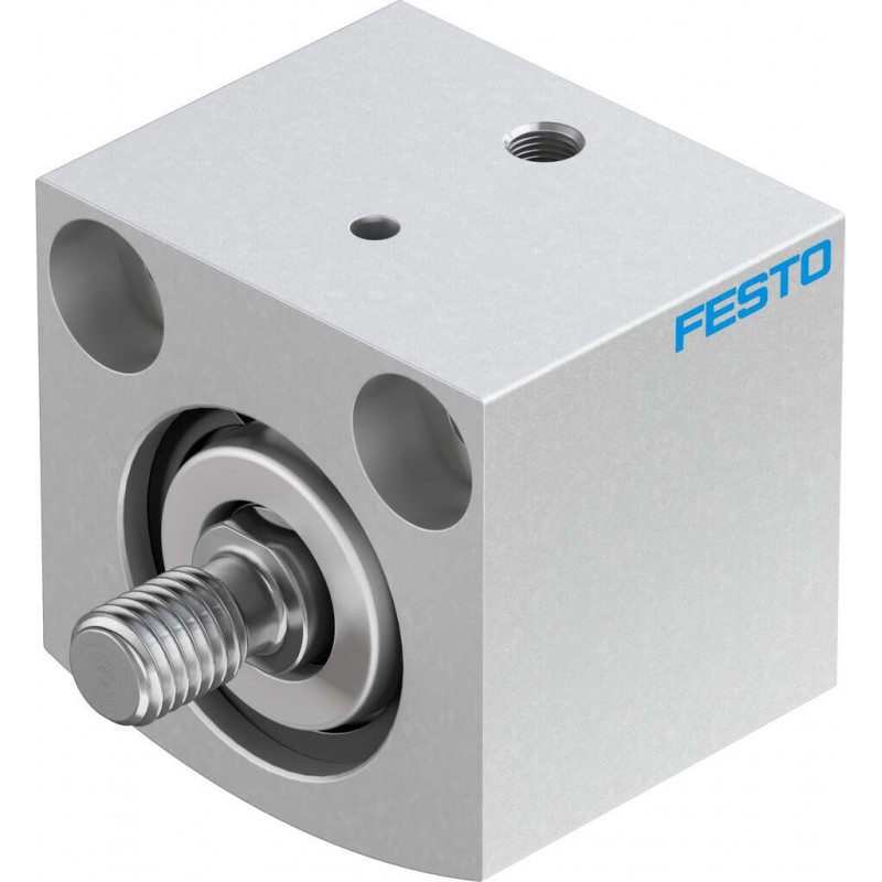 Festo AEVC sorozatú egyszeres működtetésű (nyomó) rövidlöketű henger, dugattyú átmérő 25 mm, lökethossz 10 mm. Rugalmas csillapító gyűrűkkel mindkét végén, üzemi nyomás 1.5 bar ... 10 bar, pneumatikus csatlakozás M5.