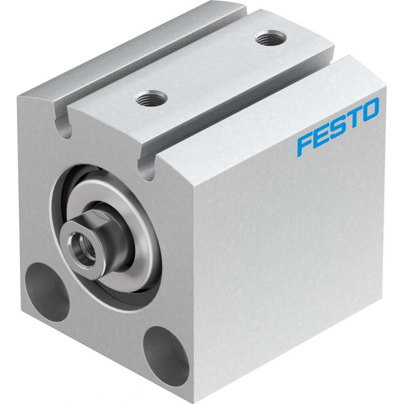 Festo ADVC sorozatú kettősműködésű rövidlöketű henger, dugattyú átmérő 25 mm, lökethossz 10 mm. Rugalmas csillapító gyűrűkkel mindkét végén, üzemi nyomás 1 bar ... 10 bar, pneumatikus csatlakozás M5.