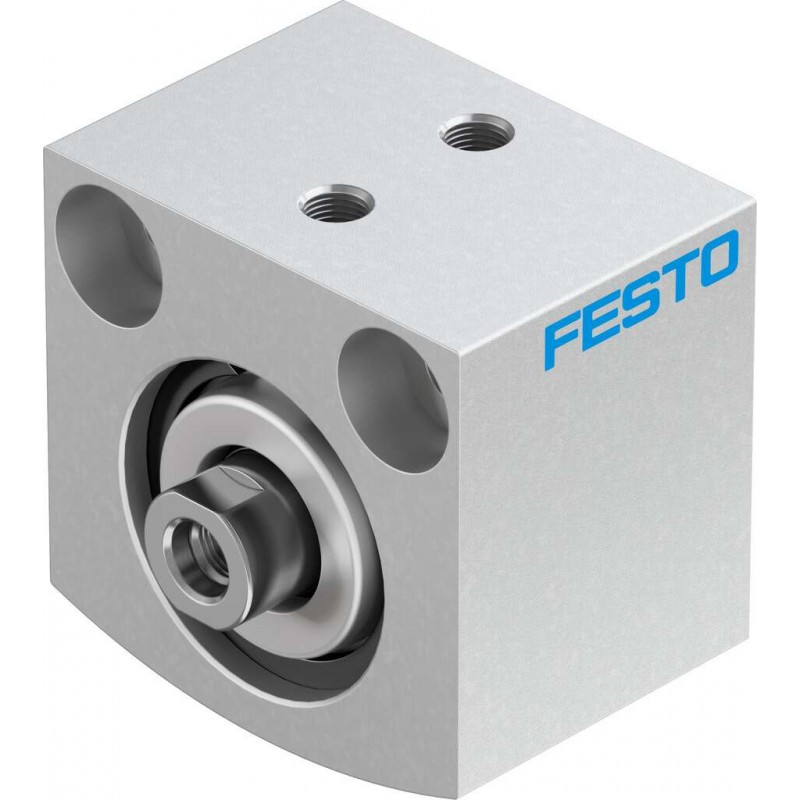 Festo ADVC sorozatú kettősműködésű rövidlöketű henger, dugattyú átmérő 25 mm, lökethossz 5 mm. Rugalmas csillapító gyűrűkkel mindkét végén, üzemi nyomás 1 bar ... 10 bar, pneumatikus csatlakozás M5.