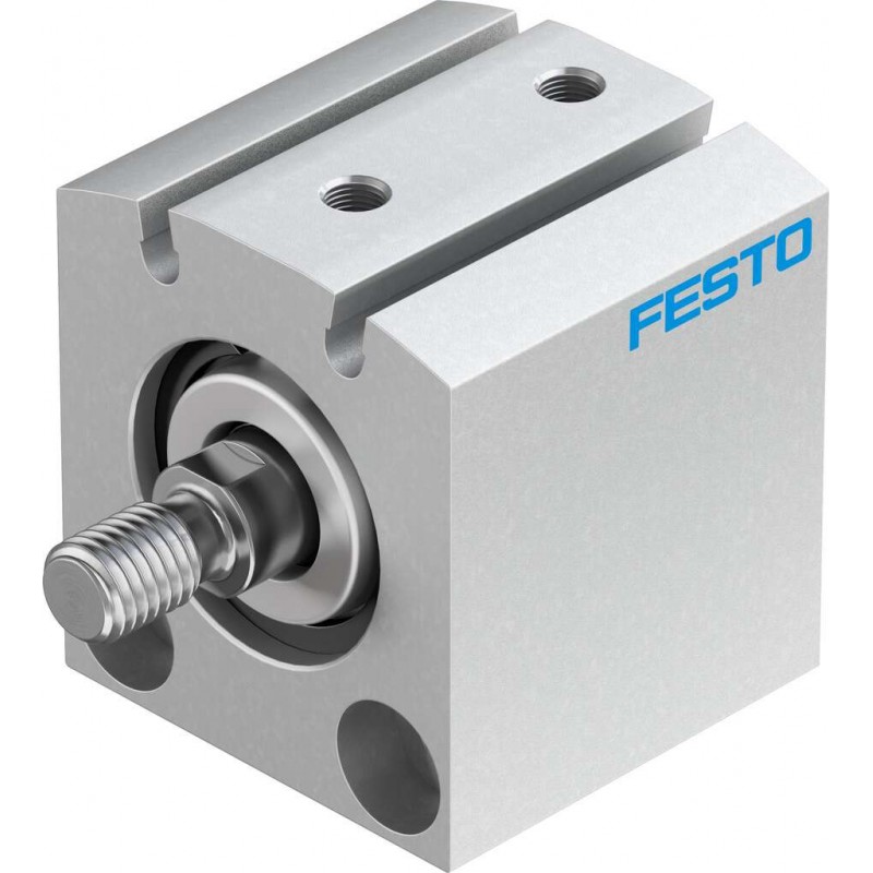 Festo ADVC sorozatú kettősműködésű rövidlöketű henger, dugattyú átmérő 25 mm, lökethossz 5 mm. Rugalmas csillapító gyűrűkkel mindkét végén, üzemi nyomás 1 bar ... 10 bar, pneumatikus csatlakozás M5.