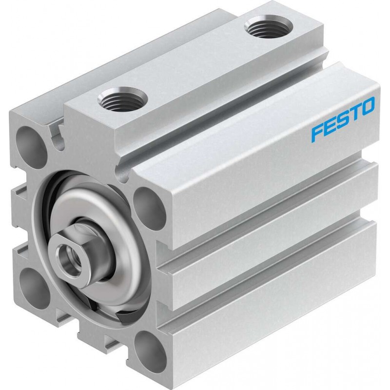 Festo ADVC sorozatú kettősműködésű rövidlöketű henger, dugattyú átmérő 32 mm, lökethossz 25 mm. Rugalmas csillapító gyűrűkkel mindkét végén, üzemi nyomás 0.6 bar ... 10 bar, pneumatikus csatlakozás G1/8.