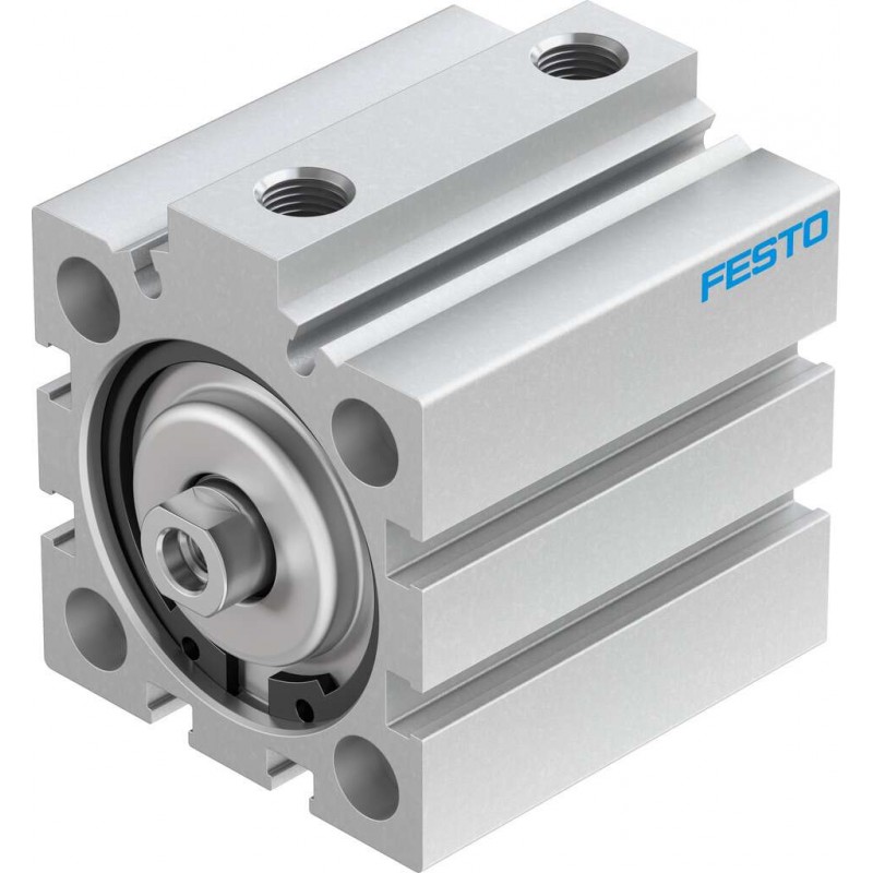 Festo ADVC sorozatú kettősműködésű rövidlöketű henger, dugattyú átmérő 40 mm, lökethossz 20 mm. Rugalmas csillapító gyűrűkkel mindkét végén, üzemi nyomás 0.6 bar ... 10 bar, pneumatikus csatlakozás G1/8.