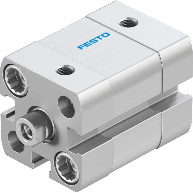 Festo ADN sorozatú kettősműködésű kompakt henger, dugattyú átmérő 16 mm, lökethossz 5 mm, pneumatikus csatlakozás M5, löketvégi csillapítás: rugalmas csillapító gyűrűvel.