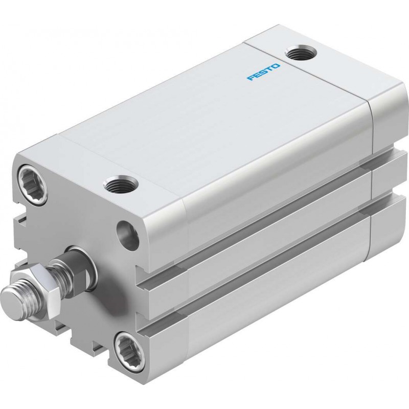 Festo ADN sorozatú kettősműködésű kompakt henger, dugattyú átmérő 40 mm, lökethossz 60 mm, pneumatikus csatlakozás G1/8, löketvégi csillapítás: rugalmas csillapító gyűrűvel.