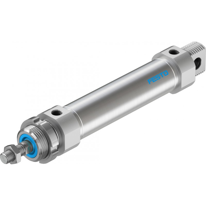 Festo DSNU sorozatú kör keresztmetszetű kettősműködésű henger, átmérő 32 mm, lökethossz 100 mm. Dugattyúrúd menet M10x1.25, pneumatikus csatlakozás G1/8, működési nyomástartomány: 1 bar ... 10 bar. Löketvégi csillapítás: állítható.