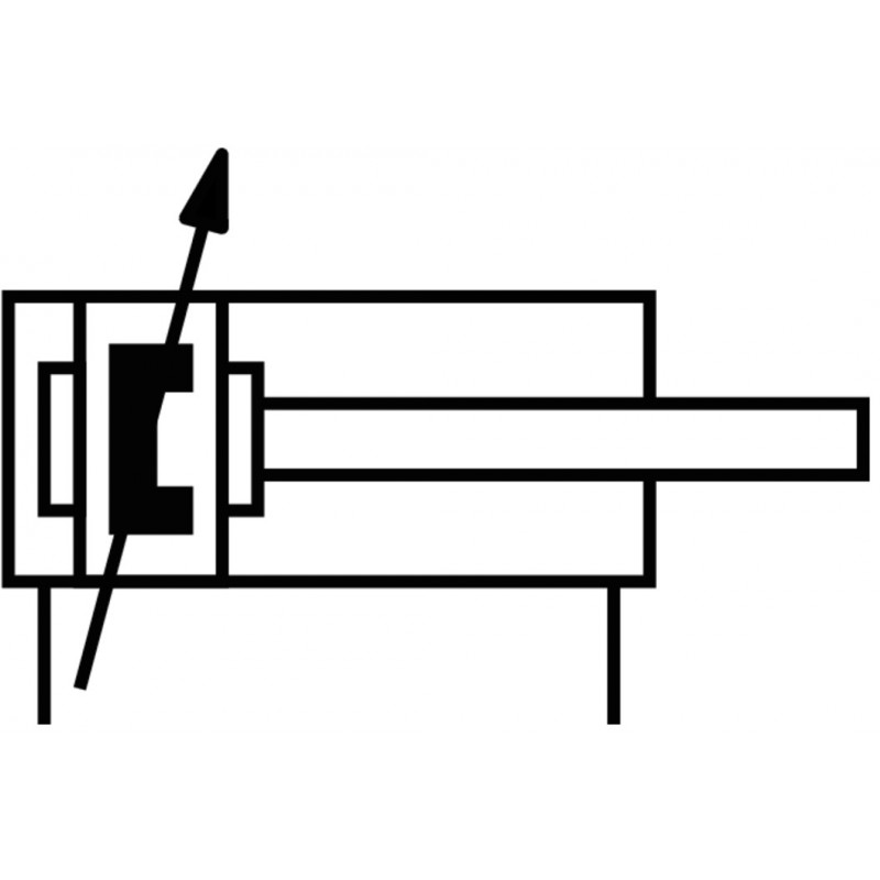 Kettősműködésű szabványos henger, átmérő 32 mm, lökethossz 25 mm. Dugattyúrúd menet M10x1,25, pneumatikus csatlakozás G1/8, működési nyomástartomány: 0.6 bar ... 12 bar. Önbeálló véghelyzet csillapítással.