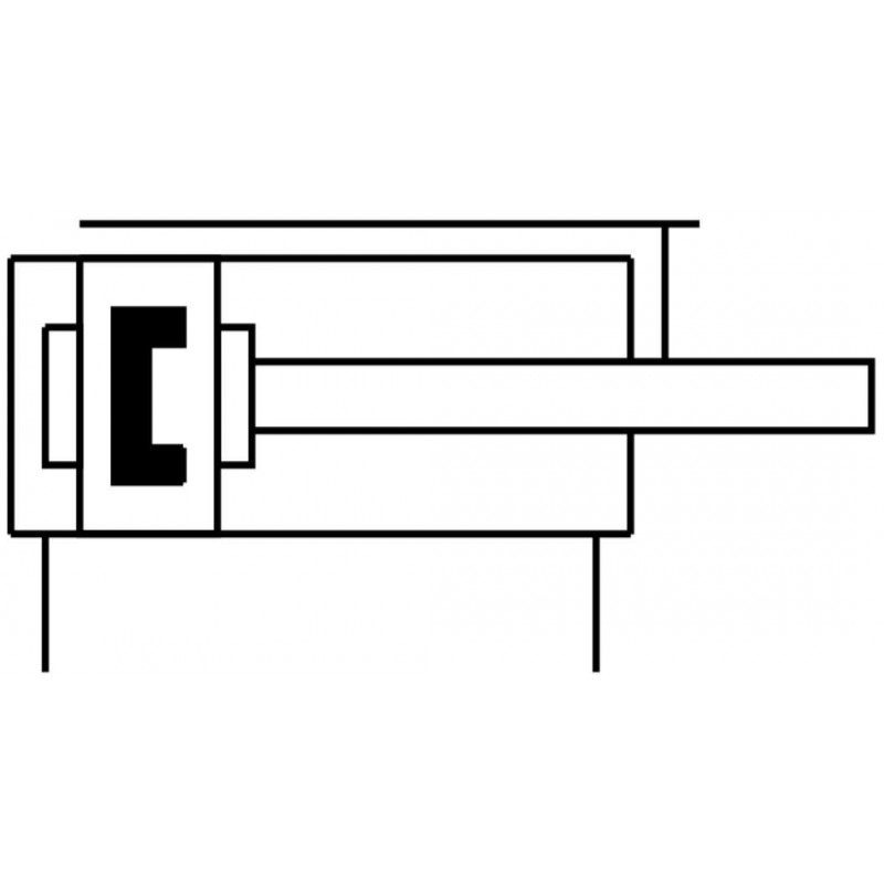 Festo DFM sorozatú kettősműködésű vezetett henger siklócsapággyal, dugattyú átmérő 63 mm, lökethossz 25 mm. Rugalmas csillapító gyűrűkkel mindkét végén, üzemi nyomás 1 bar ... 10 bar, pneumatikus csatlakozás G1/4.