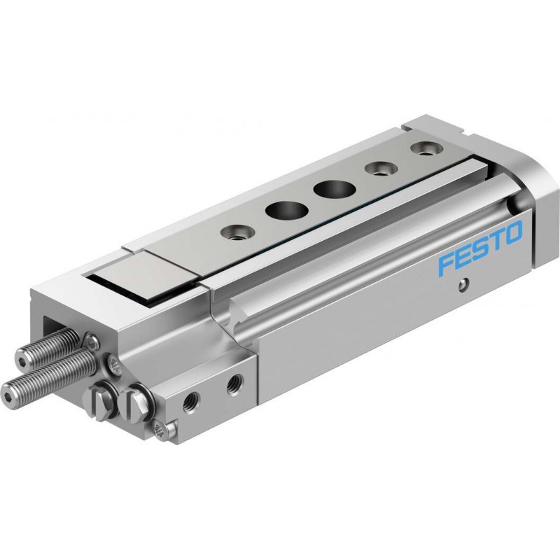 Festo DGSL sorozatú mini szánegység, dugattyú átmérő 6 mm, lökethossz 20 mm. Rugalmas csillapító gyűrűkkel mindkét végén, üzemi nyomás 2.5 bar ... 8 bar, pneumatikus csatlakozás M3.