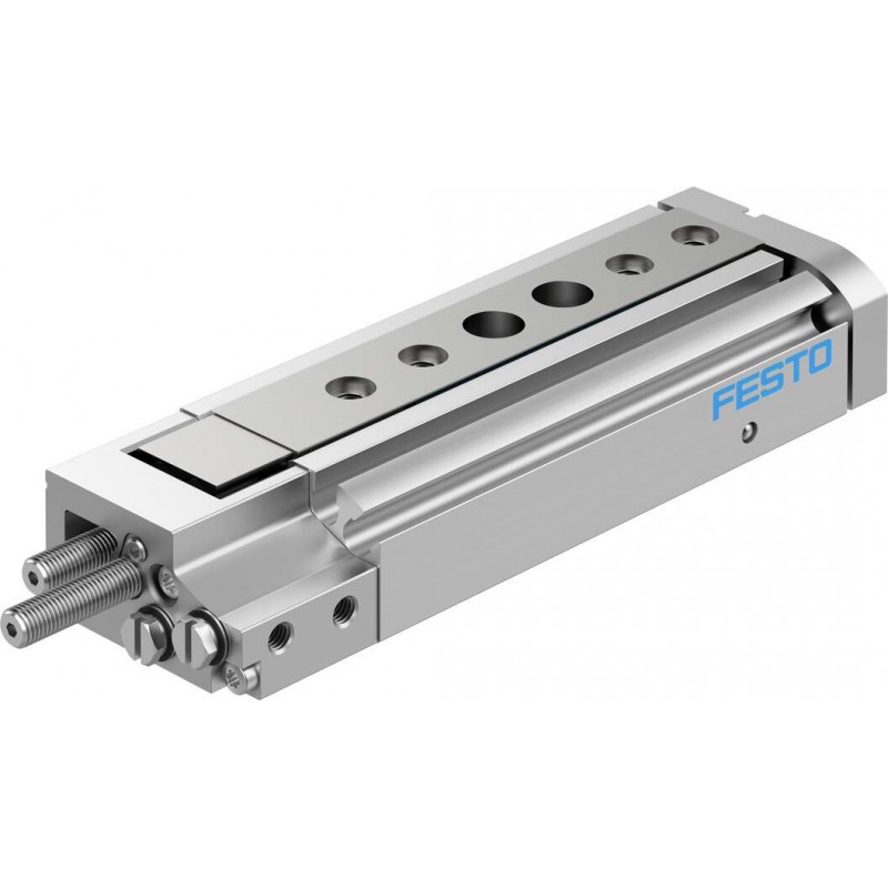 Festo DGSL sorozatú mini szánegység, dugattyú átmérő 6 mm, lökethossz 30 mm. Rugalmas csillapító gyűrűkkel mindkét végén, üzemi nyomás 2.5 bar ... 8 bar, pneumatikus csatlakozás M3.