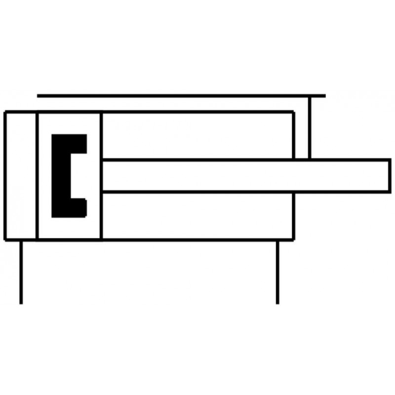 Festo DFM sorozatú kettősműködésű vezetett henger siklócsapággyal, dugattyú átmérő 63 mm, lökethossz 50 mm. Rugalmas csillapító gyűrűkkel mindkét végén, üzemi nyomás 1 bar ... 10 bar, pneumatikus csatlakozás G1/4.