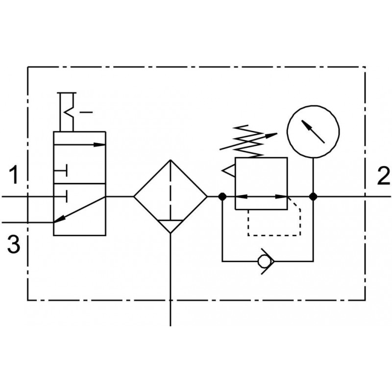 Festo MS sorozatú levegő előkészítő kombináció nyomásmérő órával, szűrési finomság 40 µm, kézi kondenzátum leeresztővel. Normál névleges áramlási sebesség 900 l / perc, pneumatikus csatlakozás G1/4. Üzemi nyomás: 1.5 bar ... 14 bar, nyomásszabályozási tartomány: 0.5 bar ... 12 bar.