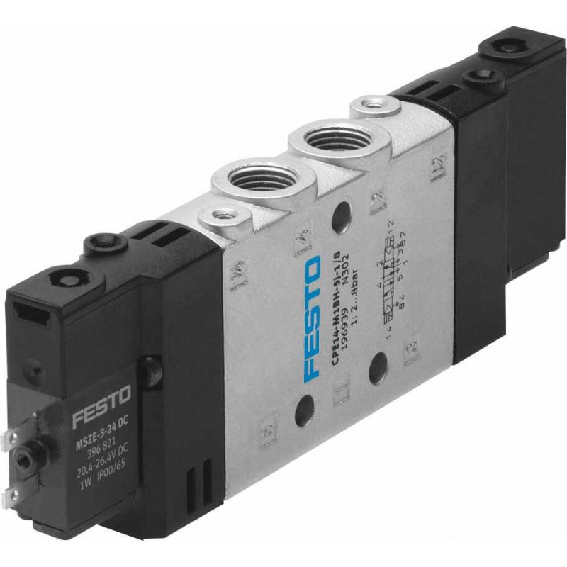 Festo CPE sorozatú 5/2 bistabil mágnesszelep, 24 VDC, G1/8 pneumatikus csatlakozással. Normál névleges áramlási sebesség: 800 l / perc, üzemi nyomás: 2 bar ... 8 bar.