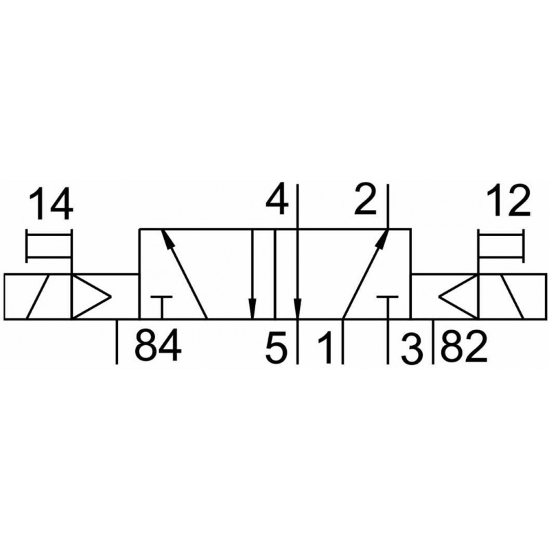 Festo VUVG sorozatú 5/2 bistabil mágnesszelep, 24VDC, karimás csatlakozással. Normál névleges áramlási sebesség: 160 l / perc, üzemi nyomás: 1.5 bar ... 7 bar.