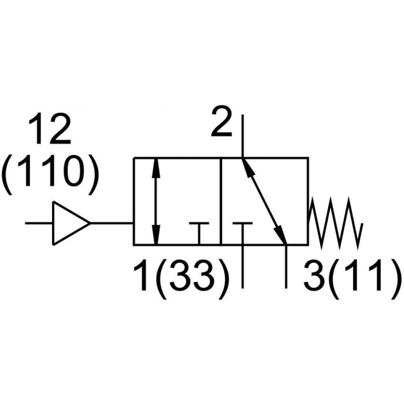 Festo VL/O pneumatikus szelep, 3/2 monostabil, G1/4 pneumatikus csatlakozással, normál névleges áramlási sebesség 800 l/perc, üzemi nyomás -0.95 bar ... 10 bar.
