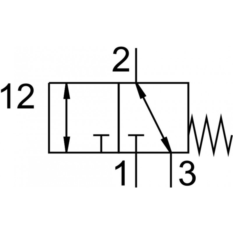 Festo SV előlapra szerelhető, kézi működtetésű 3/2 monostabil zárt szelep, G1/8 pneumatikus csatlakozással. Normál névleges áramlási sebesség 120 l / perc, üzemi nyomás 3.5 bar ... 8 bar.