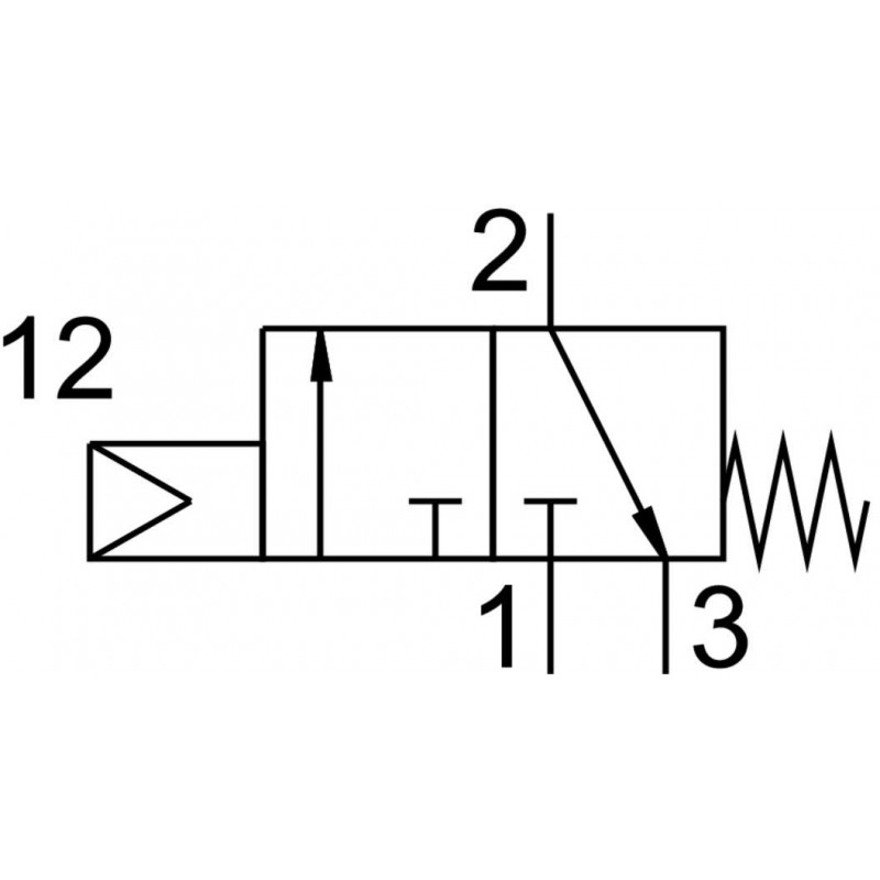 Festo SV előlapra szerelhető, kézi működtetésű 3/2 monostabil zárt szelep, G1/8 pneumatikus csatlakozással. Normál névleges áramlási sebesség 120 l / perc, üzemi nyomás 3.5 bar ... 8 bar.