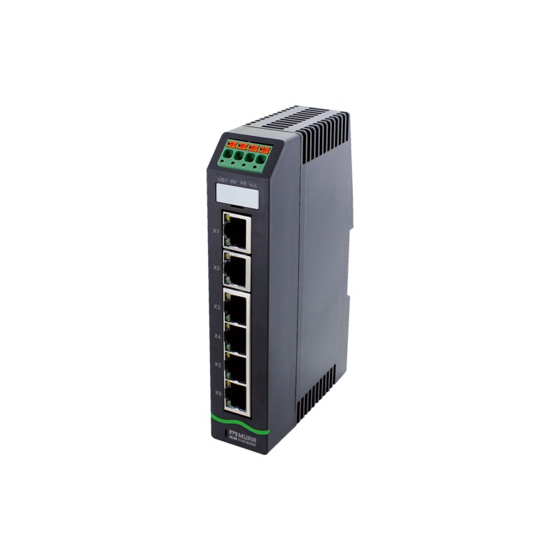Xelity 6TX nem menedzselhető switch, 6 x RJ45, 10/100 Mbit/s full duplex, fekete műanyag ház, tápfeszültség 9.5 ... 31.5 V , IP20.